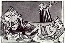 طاعون ژوستینین (۵۴۱–۵۴۲ پس از میلاد) یک همهگیری جهانی بود که امپراتوری بیزانس و به ویژه پایتخت آن قسطنطنیه و همچنین شاهنشاهی ساسانی و بندرهای سراسر حاشیهٔ دریای مدیترانه را درگیر خود کرد.[19] این طاعون یکی از کشندهترین طاعونهای تاریخ بود که در حدود دو قرن بروز خود ۲۵ تا ۵۰ میلیون نفر (۱۳ تا ۲۶ درصد جمعیت جهان در زمان آغاز آن) را طعمهٔ مرگ کرد.[20]