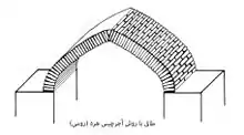 - رومی یا هِره. در این شیوه آجر یا خشت همانند شیوه «ضربی» یا «پُر» از پهلو به یکدیگر میچسبد با این تفاوت که حالت چینش به شکل «پَخ» (نازکا ایستاده) است. از آنجا که در این شیوه پهنای آجر یا خشت خوابیدهاست، رجها همراستا با دیوار دوسوی دهانه بالا میآیند. ازینرو در این سبک برخلاف روش ضربی نیازی به عضو سومی برای مهار رج نخست نیست. با این حال از آنجا که شیوه رومی تا هنگامی که طاق به کلاله خود که بلندترین بخش است نرسیده و سنگ کلاله گذاشته نشده به ویژه در طاق آهنگ با بیم شکست و فروریزش به درون از ناحیه شکرگاه به بعد روبروست به همین دلیل اجرای این بافتار دست کم در طاق آهنگ نیاز به داربست دارد که البته پس از نهادن کلاله برداشته میشود.