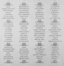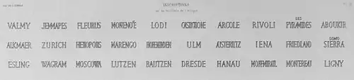 - The names of some great battles of the French Revolutionary and Napoleonic Wars are engraved on the attic, including