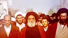 ![]() علی خامنهای، کاظم اخوان مرعشی و طاهر احمدزاده (چپ) در تظاهرات انقلاب | |