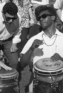 یک طبلزن در برکلی، کالیفرنیا، حوالی سال ۱۹۶۶