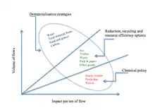 - طراحی برای دفع یا استفاده مجدد: پایان زندگی یک محصول بسیار مهم است، زیرا برخی از محصولات مواد شیمیایی خطرناکی را به هوا، زمین و آب پس از دور انداخته شدن در محلهای دفن زباله منتشر میکنند. برنامهریزی برای استفاده مجدد یا نوسازی یک محصول، نوع موادی که مورد استفاده قرار خواهد گرفت، چگونگی جدا کردن و مورد استفاده مجدد قرار دادن، و اثرات زیستمحیطی که این مواد خواهند داشت را تغییر میدهد.