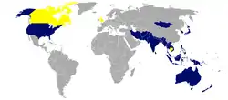 ![]() اعضای کنونی (آبی) و پیشین (زرد) طرح کلمبو | |