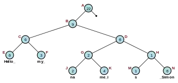 به عنوان مثال، برای پیدا کردن کاراکتر در مکان i = ۱۰ در طناب زیر، از گره ریشه شروع کن، پیدا است که ۲۲ بزرگتر از ۱۰ است و یک فرزند در سمت چپ وجود دارد، بنابراین به فرزند سمت چپ برو. ۹ کمتر از ۱۰ است، بنابراین از ۱۰، ۹ را کم کن (قرار بده i = ۱) و به فرزند سمت راست برو. سپس چون ۷ بزرگتر از ۱ است و یک فرزند سمت چپ وجود دارد، به فرزند سمت چپ برو. ۶ بزرگتر از ۱ است و یک فرزند سمت چپ وجود دارد، پس دوباره به فرزند سمت چپ برو. در نهایت ۲ بیشتر از ۱ است، اما دیگر فرزندی در سمت چپ موجود نیست، پس کاراکتر موجود در index 1 از رشته کوتاه "NA"، پاسخ مورد نظر است.