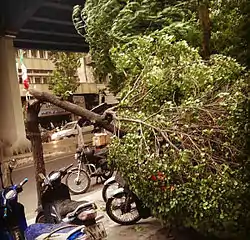 ![]() یک درخت شکسته شده در اثر طوفان تهران، پل حافظ | |