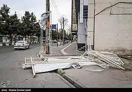 ![]() افتادن بیلبورد تبلیغاتی بر اثر طوفان ۱۳۹۷ ارومیه | |