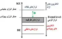 تراز فرمی (Fermi level): ترازی که در آن میزان انرژی پیوند الکترونها با هسته اتم، صفر میباشد.