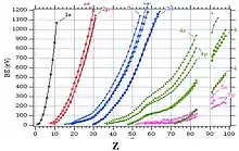 انرژی یک زیرلایه الکترونی، با افزایش عدد اتمی.Z، افزایش میابد. این امر در شکل زیر نشان داده شدهاست.