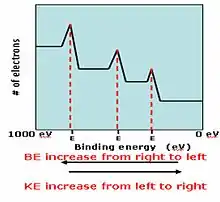 که انرژی پیوند الکترون، انرژی پرتو ایکس تابانده شده، انرژی جنبشی الکترون (بوسیله دستگاه ویژهای اندازهگیری میشود) و تابع کار طیفسنج (و نه ماده) است.
