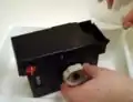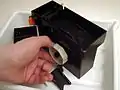 ریختن داروی ظهور همراه چرخاندن قرقره فیلم.
