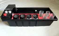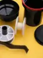 تانک ظهور فیلم رول، با ریل پلاستیکی که قابلیت تنظیم برای فیلمهای ۱۳۵ و ۱۲۰ را دارد.