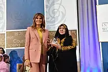 - Morello, Carol (2018-03-23). "Melania Trump presents Women of Courage awards at State Department". Washington Post. ISSN 0190-8286. Retrieved 2018-04-04.