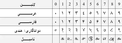 گونههای نوشتاری اعداد انگلیسی/پارسی