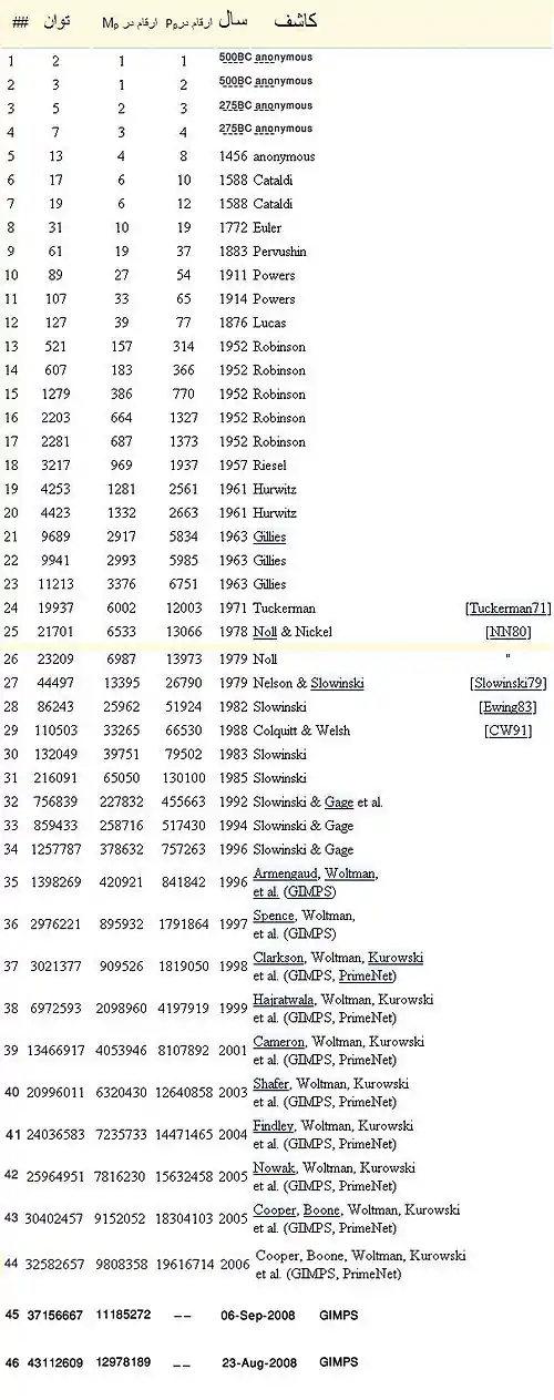 در سال ۱۹۶۳ کشف شد که ۱–۱۱۲۱۳^۲ اول است، و این به وسیله بستههای پستی مخصوص ساخته شده با مُهرِ فرستاده شده از یوبرانا، ایلینیوس اعلام شد. یک شبکه تحقیقاتی توزیع شده در اینترنت توسط ولتمن به پا شدهاست که به GIMPS(Great Internet Mersenne Prime Search) معروف است و و داوطلبان بیشمار آن، از کامپیوترهای شخصی خود برای انجام دادن قسمتهای مختلفی از تحقیقات استفاده میکنند. در ۱۷ نوامبر ۲۰۰۳، یکی از داوطلبان GIMPS کشف چهلمین عدد مرسن را گزارش داد و این موضوع، پس از آن تأیید شد. شش ماه پس از آن، کشف چهل و یکمین عدد مرسن توسط یکی از داوطلبان این شبکه به ثبت رسید. عدد بعدی مرسن در این سری نیز در ۱۸ فوریه ۲۰۰۵ اعلام شد. تلاشهای داوطلبان GIMP، این پروژه محاسباتی توزیع شده را تبدیل به کاشف هشت عدد بزرگتر اعداد مرسن نمود. در واقعیت، تا فوریه همین سال، شرکت کنندگان GIMPS، تمام توانهای قبل از ۹٬۸۸۹٬۹۰۰ را امتحان کردند و حتی دو بار چک کردند و همه توانهای پایینتر از ۱۵٬۱۳۰٬۰۰۰ را دست کم یک بار امتحان کردند.