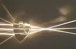 عدسی واگرا: در عدسیهای واگرا پرتوهای تابش پس از شکست و گذر از عدسی از هم دور میشوند (یعنی واگرا میشوند). لبهٔ این عدسیها پهنتر از وسط آن است و به شکلهای دو کاو، کاو تخت و هلالی واگرا ساخته میشوند. این نوع عدسی را میتوان به دو منشور که از زاویهٔ مقابل قاعده به یکدیگر وصل شدهاند، تشبیه کرد. از این عدسی میتوان به عنوان عینک برای افراد نزدیک بین-آستیگمات استفاده نمود. این نوع عدسی شیئ را کوچکتر نشان میدهد.