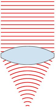 عدسی همگرا: در عدسی همگرا پرتوهای تابش پس از شکست و گذر از عدسی، به هم نزدیک میشوند (یعنی همگرا میشوند). در عدسیهای همگرا، لبهها نازکتر از وسط آن است و بهطور معمول برای کاربردهای متفاوت به شکلهای دو کوژ، کوژ تخت و هلالی همگرا ساخته میشوند. این عدسی از اتّصال دو منشور که از قاعده به یکدیگر وصل شدهاند تشبیه شدهاست. از این نوع عدسی در میکروسکوپها (تمام قسمتها) تلسکوپها (برخی قسمتها) و عینک افراد دوربین یا آستیگمات (ترکیب عدسیهای محدّب با چینش مخصوص) استفاده میشود. این نوع عدسی شیئ را بزرگتر نشان میدهد.