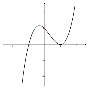 در این شکل مقدارِ عددیِ عرض از مبدأ برابر ۱ است و با نقطهای قرمز رنگ مشخص شدهاست.
