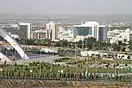 پس از بیرونروی از اتحاد جماهیر شوروی سوسیالیستی، تعداد زیادی ساختمانهای مسکونی بلند در این شهر بهوجود آمد. تکنیکهای ساختمانی مدرن ساختمانهای بلند اغلب ۱۲ را توسعه داد که نسبتاً در مقابل زلزله مقاوم هستند. ساختمانها در اصل برجهای مسکونی هستند که طبقهٔ اول عموماً به محلهای خرید و خدماتی اختصاص داده شدهاست. بسیاری از این ساختمانها از مرمر سفید ساخته شدهاند. بنای یادبود بیطرفی یک بار پایین آورده شد و دوباره در جنوب پایتخت در همان شکل اولیهاش بر پا شد. برج ترکمنستان، که ۲۱۱ متر ارتفاع دارد، جدیدترین ساختمان در این کشور است.[5]
