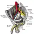 ![]() The شبکه کمری and its branches. (Femoral labeled at bottom left.) | |