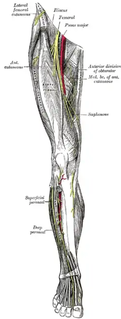 ![]() عصب اندام تحتانی راست. نمای جلویی. | |