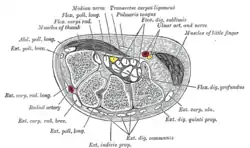 ماهیچههایی که در ناحیه ساعد توسط عصب میانی، عصبرسانی میشوند عبارتند از:
