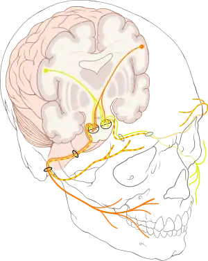 - هسته حرکتی عصب چهره ای[2](هسته اصلی)که در پل مغزی قرار دارد.فیبرهای هسته حرکتی عصب هفتم مغزی به عضلات چهرهای میروند[3].حالت طبیعی چهره به عملکرد صحیح عضلات چهرهای که از طریق عصب هفتم عصب دهی میشوند، وابستهاست.