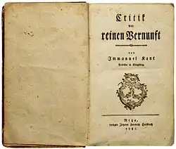 - نقد عقل محض یا نقد اول نخستین کتاب از سهگانهٔ فلسفه انتقادی از ایمانوئل کانت است که اولینبار در سال ۱۷۸۱ چاپ شد. این کتاب مهمترین اثر کانت است و دربارهٔ ویژگیهای عقل و توان آن در شناخت متافیزیک است.