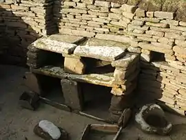 - ساختاری سنگی با بامی از چوب، یافتشده در دولنی وستونیتسهٔ چکسلواکی، از سال ۲۳ ق. م