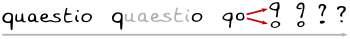 یک دیاگرام که روند تکامل علامت سؤال را از ریشهٔ لاتین نشان میدهد.