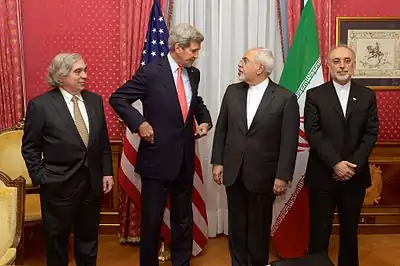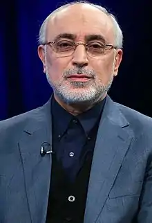علیاکبر صالحی (زاده ۴ فروردین ۱۳۲۸ در کربلا[6]) از سال ۱۳۹۲ معاون رئیسجمهور و رئیس سازمان انرژی اتمی ایران است. صالحی پیشتر از سال ۱۳۸۸ تا ۱۳۸۹ نیز همین سمت را بر عهده داشت. صالحی از سال ۱۳۸۹ تا ۱۳۹۲ وزیر امور خارجه ایران بود.[7] او از سال ۱۳۷۷ تا ۱۳۸۲ نماینده ایران در آژانس بینالمللی انرژی اتمی بود و بین سالهای ۱۳۸۶ تا ۱۳۸۸، معاونت دبیرکل سازمان همکاری اسلامی را بر عهده داشت.