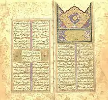 ![]() برگی دستنوشته و دستساخته از دیوان علینقی کمرهای به سال ۱۰۳۳ق/۱۶۲۴م، موزه ملک | |
