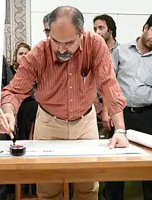 - ۴۵ اثر خوشنویسی اهدایی به پادشاهان و روسای کشورهای عضو کنفرانس سران اسلامی به سفارش محمد خاتمی ریاست جمهور وقت ایران در هشتمین اجلاس سران در ۱۳۷۶، تهران