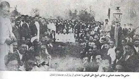 شیخ علی که از مجتهدان بنام بود در مشروطه او به صف مشروعه خواهان پیوست و با مشروطه طلبان مبارزه کرد. او در این مبارزه با روحانی بزرگ گیلان ملا محمد خمامی همراه شد. در تلگرافی که مجلس شورا به خمامی مخابره کرد و او را از حرکت به سوی پایتخت منصرف ساخت، نام شیخ علی نیز به دنبال اسم خمامی ذکر شدهاست. در روزهای درگیری مشروطه طلبان با حکومت، گروهی از آنان در رشت، کمیتهای به نام ستار تشکیل دادند. افرادی چون: میرزا کریم خان، میرزا علی محمد خان تربیت، میرزا حسین کسمایی و… از اعضاء آن بودند. این گروه به طور سری به کشتن مخالفان خود دست میزدند. شیخ علی فومنی و خمامی نیز مانعی بر سر ایجاد مشروطه بودند.[1]