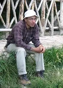 ![]() پارسا در محوطهٔ خارجی غار کرفتو، خرداد ۱۳۸۵ خورشیدی | |