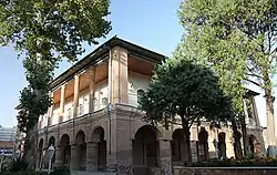 این عمارت به اوایل دوران پهلوی تعلق دارد. نمای ضلع شمالی این بنا رو به سمت خیابان فلسطین است. این عمارت شبیه کوشک ساخته شده وایوانی به صورت غلام گردشی دور آن قراردارد. درطبقه همکف این عمارت، یک راهرویاسالن مرکزی و تعدادی اتاق با کاربری خدماتی و در طبقه بالای آن یک تالار مستطیل شکل کشیده و تعدادی اتاق قرارگرفتهاست. ضلع شرقی وغربی این بنا دارای هفت ستون ودوستون مشترک در تقاطع اضلاع است و در اضلاع شمالی وجنوبی آن پنج ستون وجود دارد. همچنین کف عمارت اندکی بالاتر از کف حیاط قرارگرفتهاست.[2]