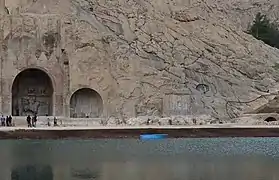 «عمارت مسعودیه»، یک بنای دو طبقه زیبا با تزیینات گچبری و آیینهکاری منحصر به فردی بود که به دستور عمادالدوله، حکمران وقت کرمانشاه، در کنار سراب طاق بستان و نزدیک به نقوش برجسته این محوطه تاریخی در استان کرمانشاه ساخته شده بود. این بنا با وجود زیبایی هنری فاقد ارزش تاریخی بود. طاق بستان، محوطه تاریخی و دارای یک سراب و نقوش برجسته ساسانی است که احتمالاً این منطقه شکارگاه و محل تفریح پادشاهان ساسانی در روزگاران گذشته بودهاست.[2]