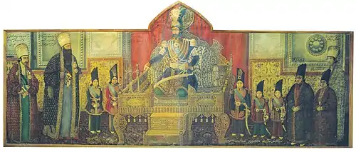 پردهٔ سلام نوروزی در عمارت نظامیه اثر صنیعالملک است. این پرده متشکل از هفت قطعهٔ بزرگ است که ناصرالدینشاه، شاهزادگان و درباریان را نشان میدهد. در پردهٔ مرکزی ناصرالدینشاه بر تخت خورشید، معروف به تخت طاووس نشستهاست و دوسوی او پسران، برادران، عموها و صدراعظم او میرزا آقاخان نوری و نایب صدراعظم، نظامالملک، ایستادهاند. درشش قطعه دیگر شاهزادگان، درباریان، رجال مملکت، اعیان و اشراف، رؤسای ایلات و عشایر کشور و سفیران خارجی به صف ایستادهاند.[8] این اثر، بر خلاف صف سلام باغ نگارستان، نقاشیهای کاخ سلیمانیه و سایر آثار مشابه که بر روی گچ اجرا شدهاند، روی بوم کشیده شدهاست تا قابل جداسازی باشد و در اثر تخریب بنا آسیب نبیند.[9] این پرده پس از تخریب عمارت نظامیه، به مدت شصت سال در انبار کاخ گلستان قرار داشت تا آنکه در خرداد ۱۳۹۰ برای نخستین بار رونمایی شد.[8]