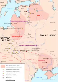 پس از پایان جنگ جهانی اول، با روی کار آمدن کمونیستها در روسیه و با بازپسگیری تقریباً تمامی اراضی از دست رفته پیشین، اتحاد جماهیر شوروی نیز همان سیاست توسعهطلبانه پیشین را اتخاذ کرد. با وجود تحمل ویرانی شدید در اثر یک دهه جنگ مستمر، شوروی با بهرهمندی از جمعیت و منابع طبیعی فراوان، از امکان صنعتی بالایی برخوردار بود که اگر محقق میشد هرگونه برتری آلمان را به خطر میانداخت. این حاکمیت نیز خواهان دستیابی به اراضی بیشتر در سرزمینهای غربی و جنوب غربی خود از جمله مناطق حوزه دریای بالتیک و تنگههای ترکیه بود. علاوه بر این، در نخستین دهه از عمر سلطه کمونیستها بر روسیه، حکومت این کشور در تلاش بود ایده «انقلاب بلشویکی» خود را به سرتاسر جهان از جمله آلمان صادر کند. همین اقدامات باعث به پا شدن شورش کارگران کمونیست موسوم به «جنبش مارس» در سال ۱۹۲۱ در آلمان شد که به شدت توسط نیروهای مسلح جمهوری وایمار سرکوب گردید.[25]