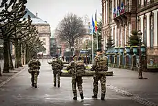 سایر کشورهای اروپایی نیز به دلیل تهدیدات تروریستی یا حملات، از جمله در بلژیک،[4] ایتالیا،[5] و انگلستان سربازانی را برای محافظت از مناطق خاص مستقر کردهاند.[6]