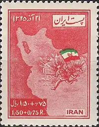 ![]() تمبر پستی ایرانی برای چهارمین سالگرد بازپسگیری آذربایجان | |||||||