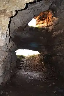 ![]() دهانه بالایی غار هوتو از بیرون. |