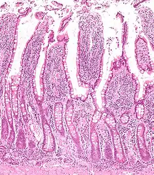 ![]() تصویر غشای مخاطی روده باریک و کریپتها. | |
