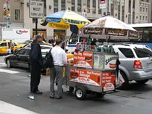 غذای خیابانی به غذاهای ارزانقیمت، آماده خوردن یا نوشیدنیهایی گفته میشود که توسط دستفروشان در خیابان، بازارها یا نمایشگاهها به فروش میرسد.[1] معمولاً غذای خیابانی از روی یک گاری یا چرخ ویژه ارائه مواد غذایی یا یک خودرو به فروش میرسد. بیشتر غذاهای خیابانی از آشپزی محلی و خوراکیهای محلی سرچشمه میگیرند؛ اما ممکن است غذاهایی که در سطوح وسیع هم خواهان داشته باشند به صورت خیابانی به فروش برسند. لقمه انگشتی و فست فود دو نوع خوراک رایج در خیابانها هستند. معمولاً غذای دستفروشها (غذای خیابانی) از غذای مشابه در رستورانها ارزان تر است. مطالعه سال ۲۰۰۷ سازمان غذا و کشاورزی ملل متحد (فائو) نشان داد که روزانه در سراسر جهان، ۲٫۵ میلیارد نفر در خیابان غذا میخورند.[2]