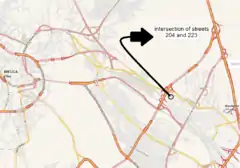 ![]() تقاطع خیابان ۲۰۴ و ۲۲۳ محل سانحهٔ منا در نزدیکی جمرات | |