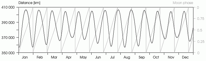 سرعت افزایش فاصلهٔ ماه از زمین در طول تاریخ تغییر کردهاست.[9]