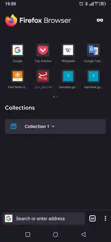 تصویری از فایرفاکس موبایل نگارش ۸۲ در سیستم عامل اندروید
