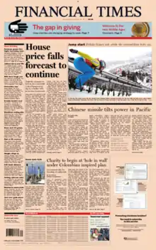![]() صفحه نخست چاپ آمریکایی روزنامه فاینانشیال تایمز، ۲۹ دسامبر ۲۰۱۰ میلادی | |