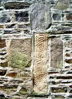 ![]() Pictish stones set into the wall of Fyvie Kirk | |