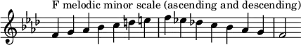 - در صورتی که درجات ششم و هفتم در حالت بالا رونده نیم پرده کروماتیک به بالا تغییر کند و در حالت پایین رونده به حالت اصلی خود برگردد، فا مینور نغمگی (یا فا مینور ملودیک) است.