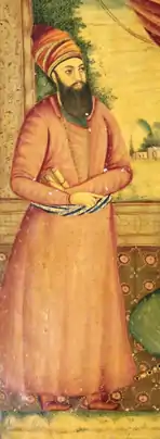 نگاره فتحعلیشاه اثر مهرعلی. این اثر در نگارخانه کاخ سعدآباد نگهداری میشود.